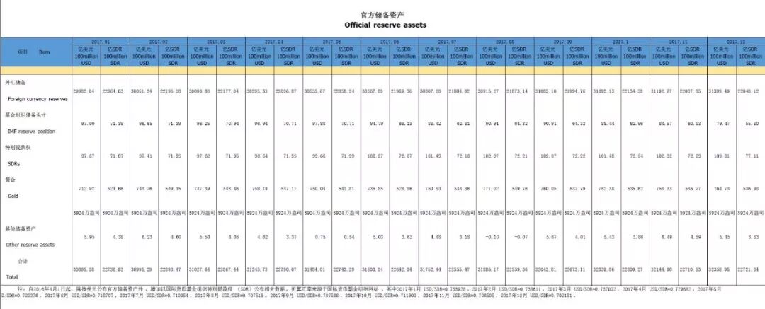 这里的看点是,自2014年始,央行主要是通过不断减持美元来优化外汇储备结构的,外汇储备从2014年6月的峰值3.99万亿美元,减少到2016年12月的3.01万亿美元,减持幅度达到25%左右。而2017年央行改变了减持美元的策略,从2月份开始变减为增,外汇储备余额连续11个月回升,这使得2017年12月的外汇储备余额达到了31399亿美元,较2016年末增加了1294亿美元。在一般情况下,美元和黄金是一对负相关的资产,2017年中国央行增持美元,保持黄金储备量不变,显示出了调整外汇结构的技巧性和艺术性。